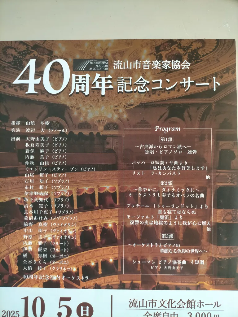 私が所属しています流山市音楽家協会の40周年記念コンサートが10月5日に行われます。